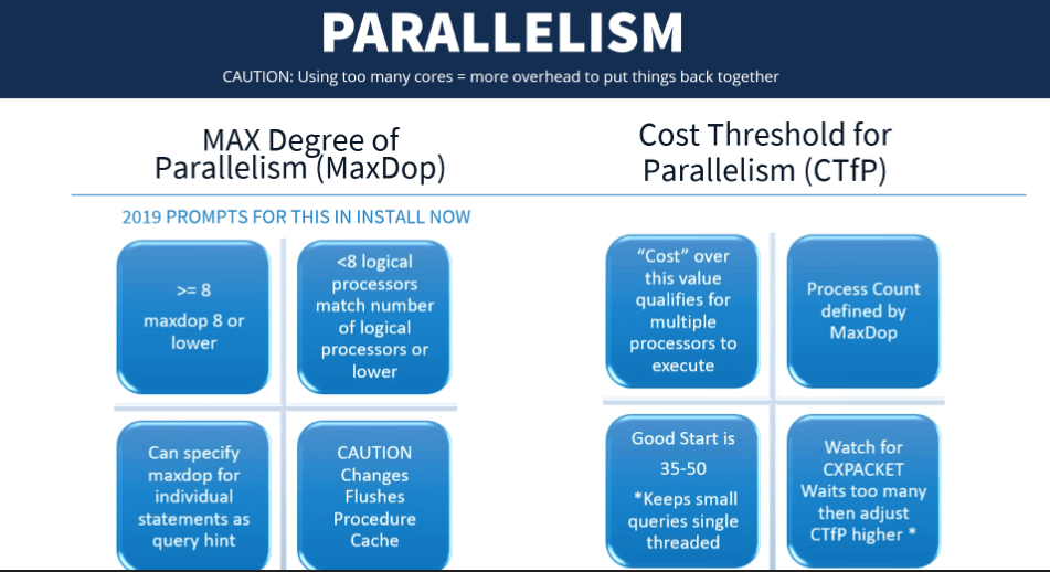 Before adjusting MAXDOP, review your indexes and statistics for accuracy and make sure there are no other underlying issues. If you choose to adjust MAXDOP, recommended settings include 4, 2, or 1. For a NUMA system, use the number of cores available in a single NUMA node. You may want to make these updates on the single query instead of the entire instance to avoid any additional problems.