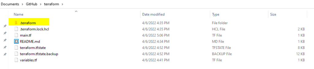 4. Once you have the .tf files in place, run the below command to install the necessary plugins. It will download the highlighted folder below.
